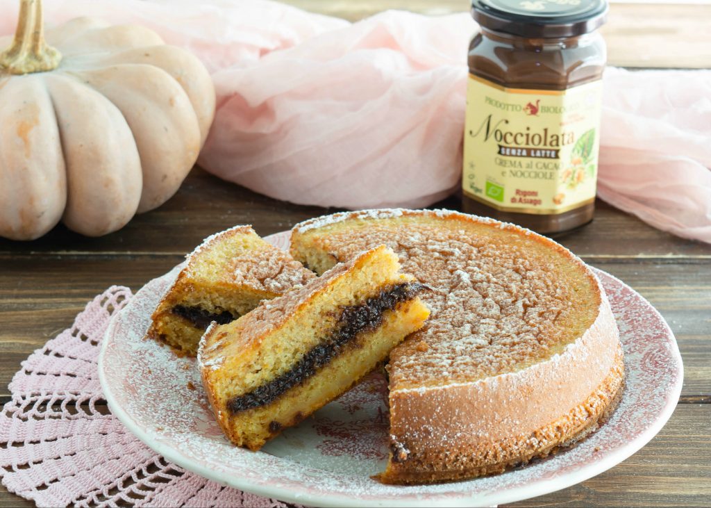 La mia è una Torta versata alla zucca, una versione dal profumo e dal gusto decisamente autunnale, ho aggiunto purea di zucca all’impasto e profumato con cannella e vaniglia, una vera bontà. All’interno uno strato abbondante di crema alle nocciole, che per magia rimane perfettamente al centro della torta, non scendendo sul fondo, la consistenza è soffice e molto umida. E’ una torta perfetta per qualsiasi occasione, si prepara in pochissimo tempo e senza alcun sforzo. Da provare!!
